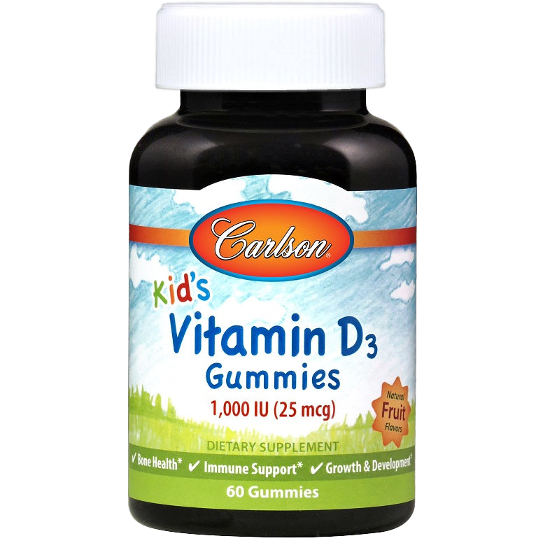 Carlson LabsKid's Vitamin D3 Gummies, 1000 IU Natural Fruit - 60 gummiesFood supplement in jelly form, containing vitamin D3Nutrition FactsServing Size: 1 GummyServings Per Container: 60