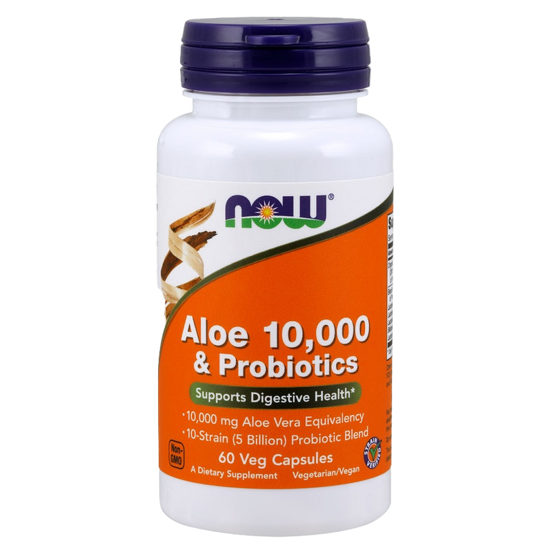 NOW Foods Aloe 10,000 & Probiotics - 60 vcaps