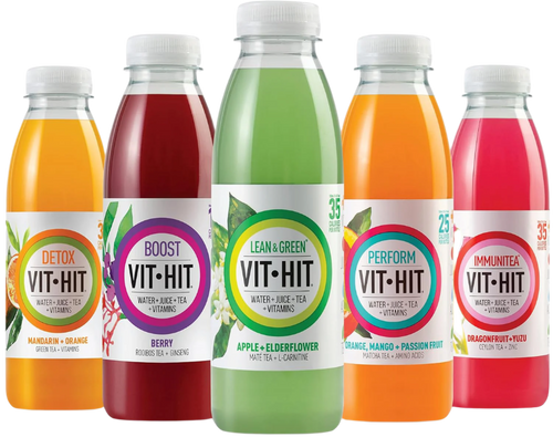 Vit-Hit 12 x 500ml – Low-Calorie Vitamin Drink with Functional Teas
