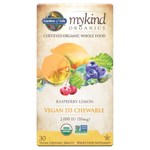 Garden of Life Mykind Organics Vegan D3 Chewable, 2000 IU (Raspberry-Lemon) - 30 vegan chewable tabs