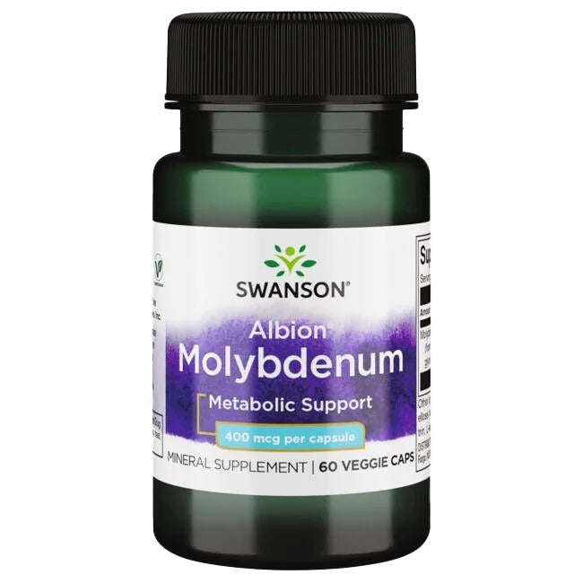 Swanson Albion Molybdenum, 400mcg - 60 vcaps, is your go-to dietary supplement for maintaining essential mineral levels in your body. Molybdenum is a trace mineral that plays a crucial role in various bodily functions, including enzyme activity that supports metabolism and detoxification processes.