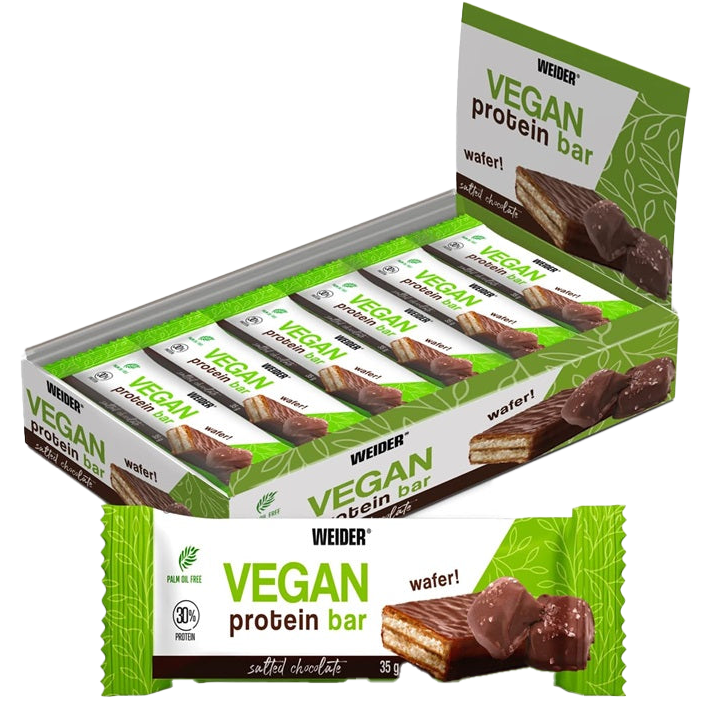 Discover the Weider Vegan Protein Bar, a high-protein wafer bar adorned with a delectable 28.5% dark chocolate coating. Each bar contains a remarkable blend of high-quality plant-based proteins, making them an ideal companion for fitness enthusiasts and anyone seeking a wholesome snack.