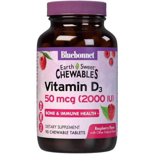 Bluebonnet Earthsweet Chewables Vitamin D3 2,000iu 90 Raspberry Tablets