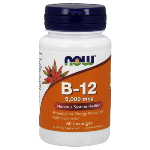 NOW Foods Vitamin B-12 mit FolsƤure, 5000 mcg – 60 Lutschtabletten