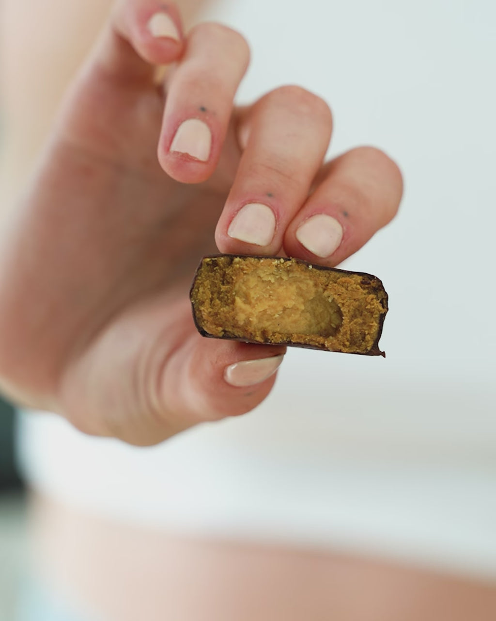 - Indulgent peanut butter cream filling enveloped in a rich chocolate layer.