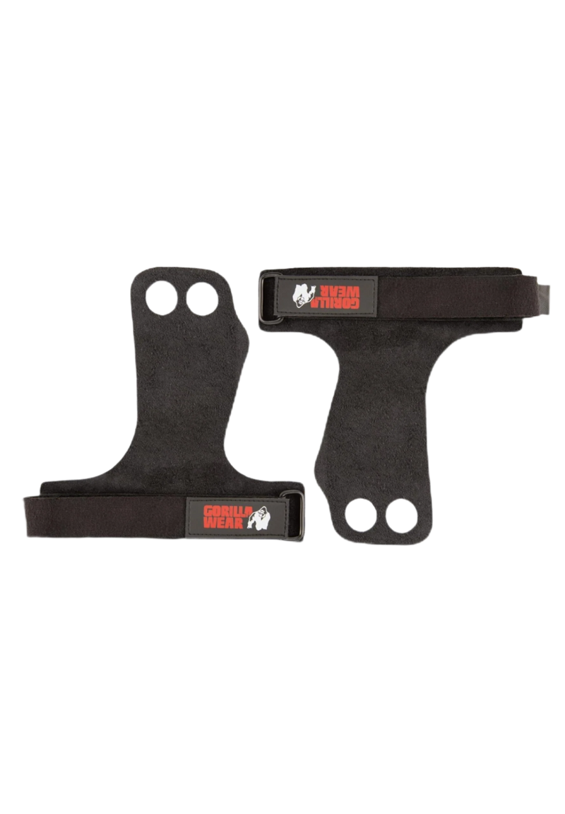 Gorilla Wear 2-Hole Leather Lifting Grips Black