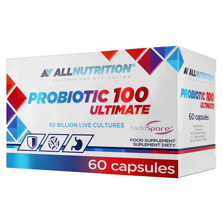 Unlock the power of gut health with Allnutrition Probiotic 100 Ultimate - 60 caps. This comprehensive dietary supplement is designed to restore your body’s natural intestinal microflora using a blend of expertly selected bacterial strains. Each capsule contributes to improved digestion and enhanced absorption of essential micro- and macroelements from your diet.